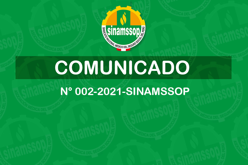 COMUNICADO N° 001-2021-SINAMSSOP El Secretario General y el Consejo Ejecutivo Nacional del Sindicato Nacional Médico del Seguro Social del Perú – SINAMSSOP, expresan su total rechazo a la decisión inconstitucional