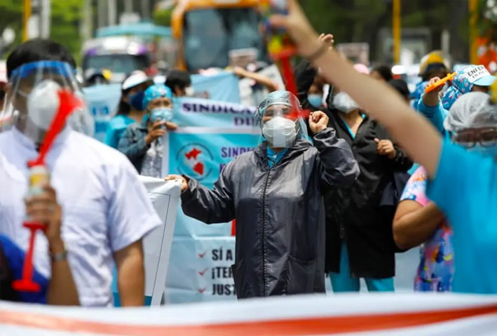 «Vamos a continuar acá hasta las últimas consecuencias», dijo el líder del sindicato de médicos del Seguro Social del Perú, Teodoro Quiñones, durante la huelga de hambre de una docena de médicosPOR: REDACCIÓN 24 HORAS– ENERO 19, 2021 7:30 PM FOTO: REUTERS / ARCHIVO“Ni un