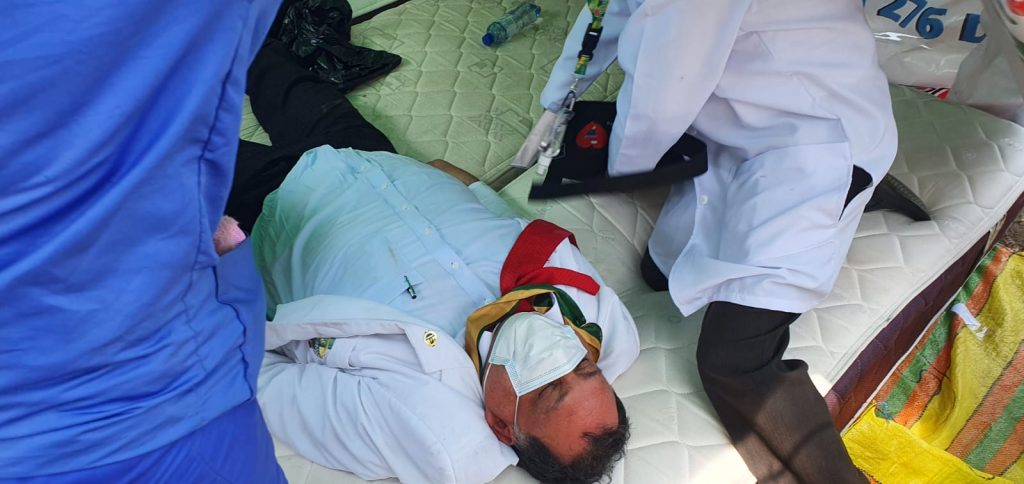 El secretario general del SINAMSSOP, Teodoro Quiñones, hizo una descompensación por la baja de glucosa, en la toma de la avenida Salaverry, en la puerta del Ministerio de Trabajo, donde