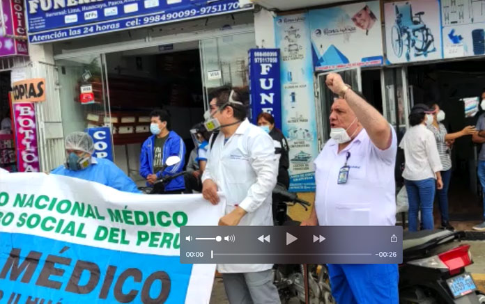 El secretario general del SINAMSSOP, Teodoro Quiñones, respaldó hoy en Huánuco las protestas del Cuerpo Médico y trabajadores, sobre las malas condiciones de trabajo que afectan la calidad del servicio