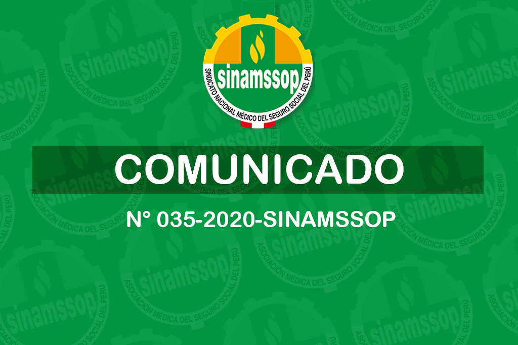 COMUNICADO N° 035-2020-SINAMSSOP El Secretario General y el Consejo Ejecutivo Nacional del Sindicato Nacional Médico del Seguro Social del Perú – SINAMSSOP, comunican a sus afiliados con absoluta satisfacción, el