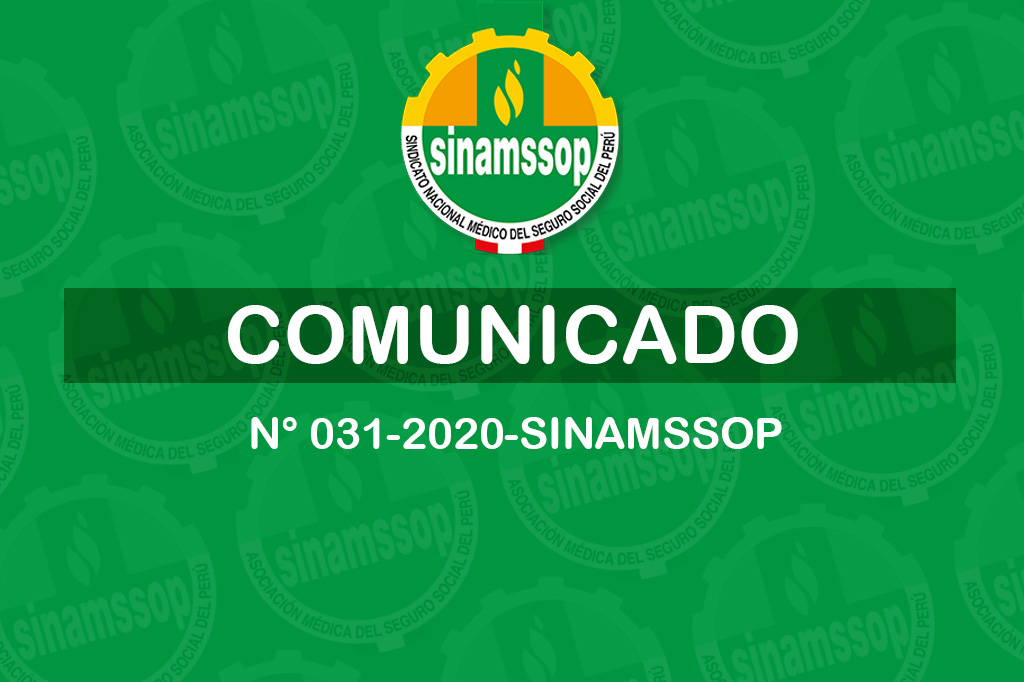 COMUNICADO N° 031-2020-SINAMSSOP El Secretario General y el Consejo Ejecutivo Nacional del Sindicato Nacional Médico del Seguro Social del Perú – SINAMSSOP, informa a la opinión pública nacional e internacional