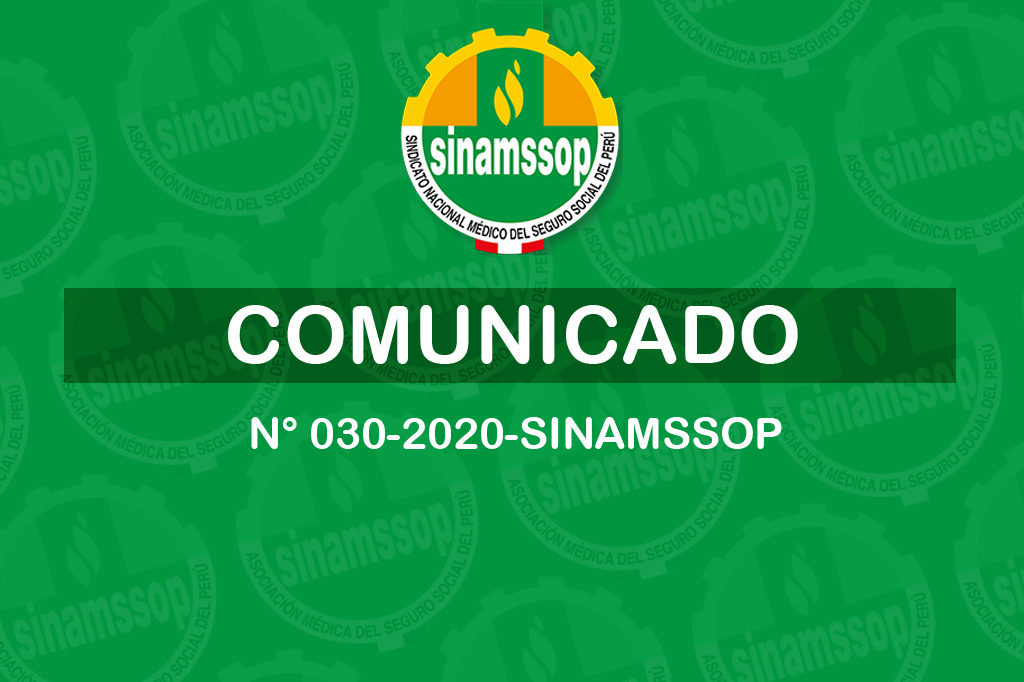 COMUNICADO N° 030-2020-SINAMSSOP El Secretario General y el Consejo Ejecutivo Nacional del Sindicato Nacional Médico del Seguro Social del Perú – SINAMSSOP, lamentan profundamente la delicada situación que afronta el