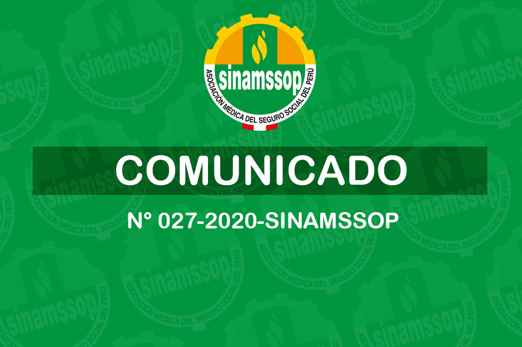 COMUNICADO N° 027-2020-SINAMSSOP El Secretario General y el Consejo Ejecutivo Nacional del Sindicato Nacional Médico del Seguro Social del Perú – SINAMSSOP, ante la grave situación de abandono e incapacidad
