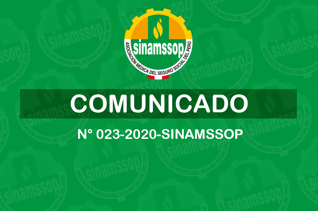 COMUNICADO N° 023-2020-SINAMSSOP El Secretario General del Consejo Ejecutivo Nacional del Sindicato Nacional Médico del Seguro Social del Perú – SINAMSSOP, a nombre de los profesionales médicos, odontólogos y químicos