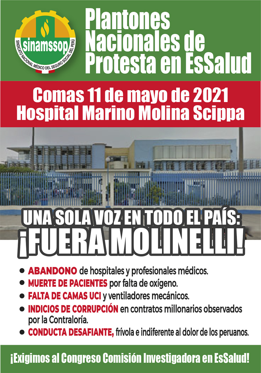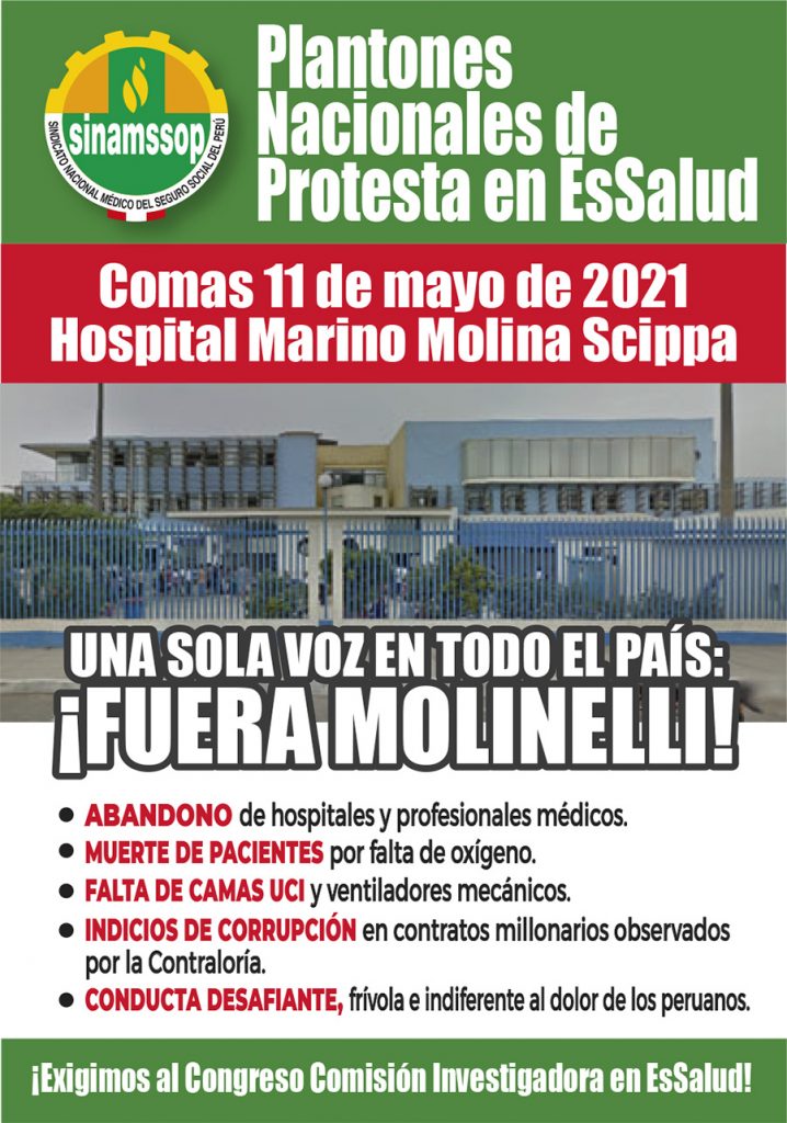 Plantones Nacionales de Protesta en EsSalud: Comas 11 de mayo de 2021 Hospital Marino Molina Scippa
