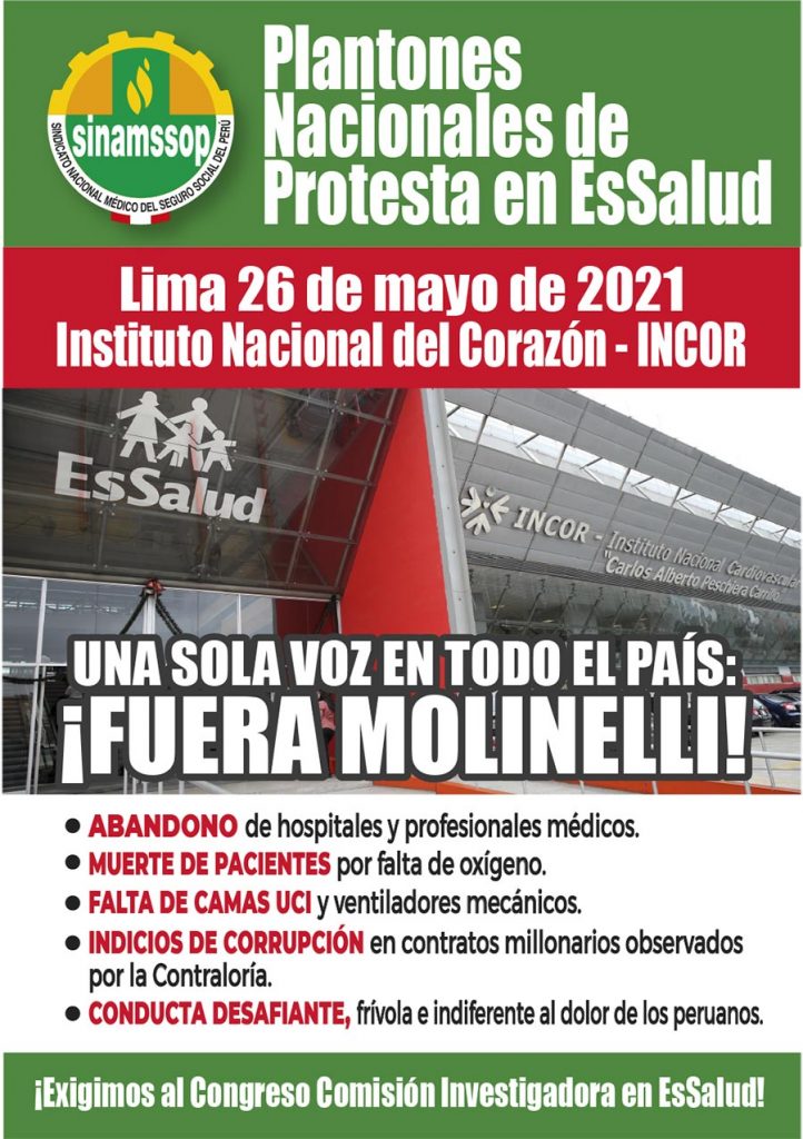 Plantones Nacionales de Protesta en EsSalud: Lima 26 de mayo de 2021 Instituto Nacional del Corazón - INCOR