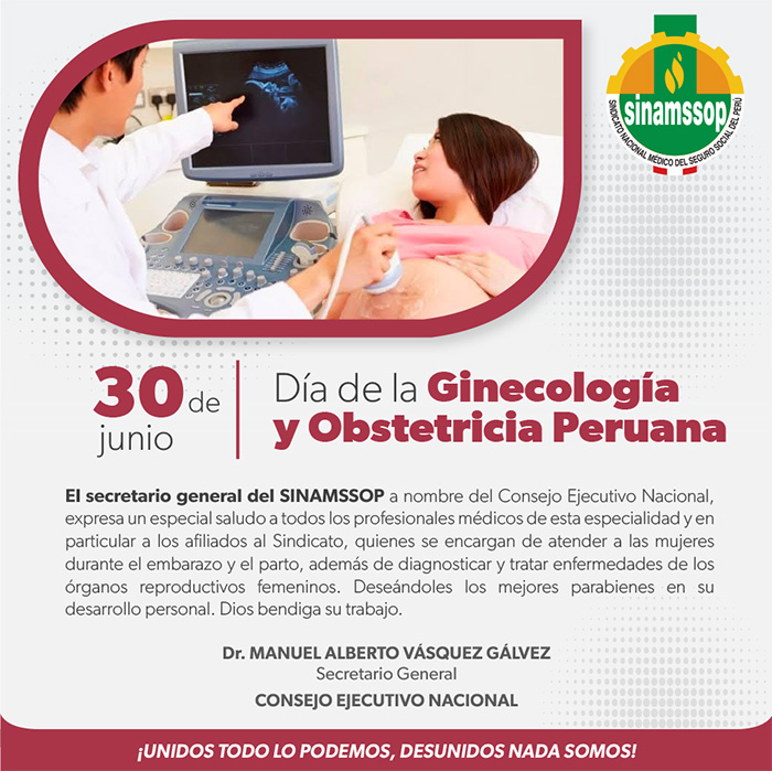 El secretario general del SINAMSSOP a nombre del Consejo Ejecutivo Nacional, expresa un especial saludo a todos los profesionales médicos de esta especialidad y en particular a los afiliados al Sindicato, quienes se encargan de atender a las mujeres durante el embarazo y el parto, además de diagnosticar y tratar enfermedades de los órganos reproductivos femeninos. Deseándoles los mejores parabienes en su desarrollo personal. Dios bendiga su trabajo.