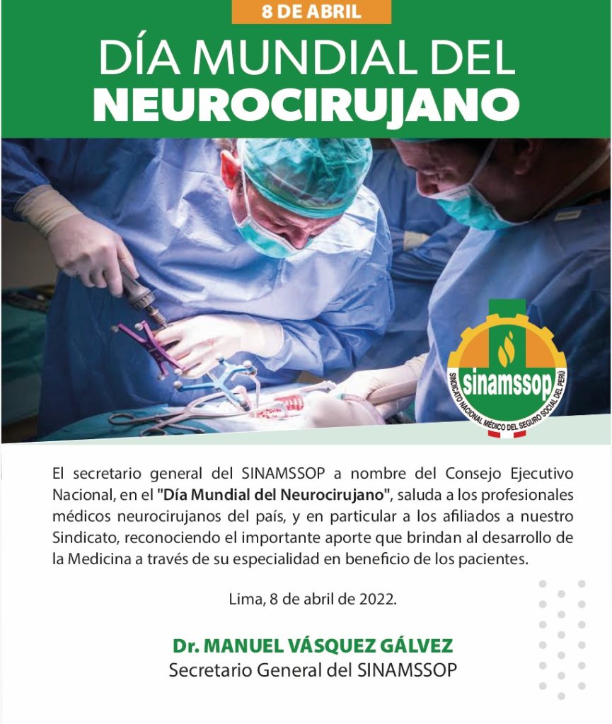El secretario general del SINAMSSOP a nombre del Consejo Ejecutivo Nacional, en el «Día Mundial del Neurocirujano», saluda a los profesionales médicos neurocirujanos del país, y en particular a los afiliados a nuestro Sindicato, reconociendo el importante aporte que brindan al desarrollo de la Medicina a través de su especialidad en beneficio de los pacientes.