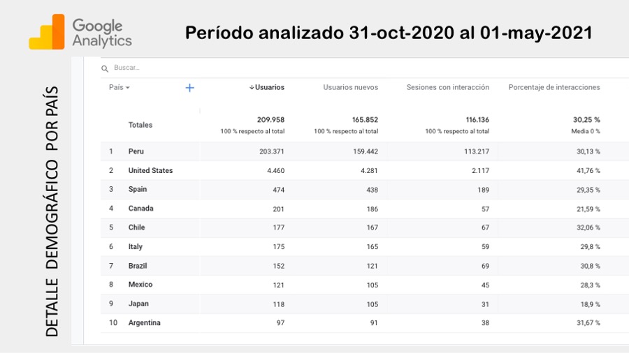 Según informe certificado de Google Analytics sobre publicaciones realizadas entre octubre de 2020 y mayo de este año