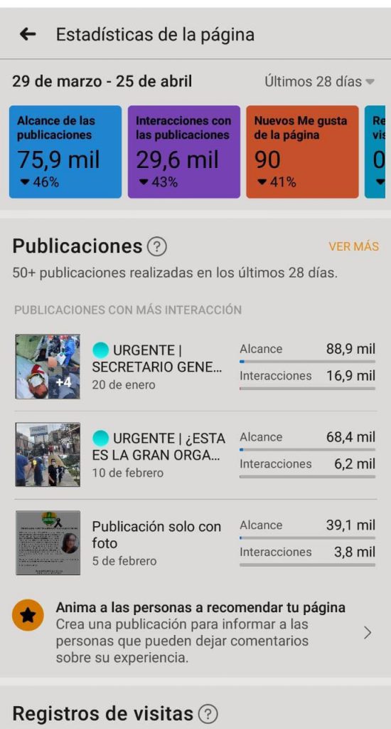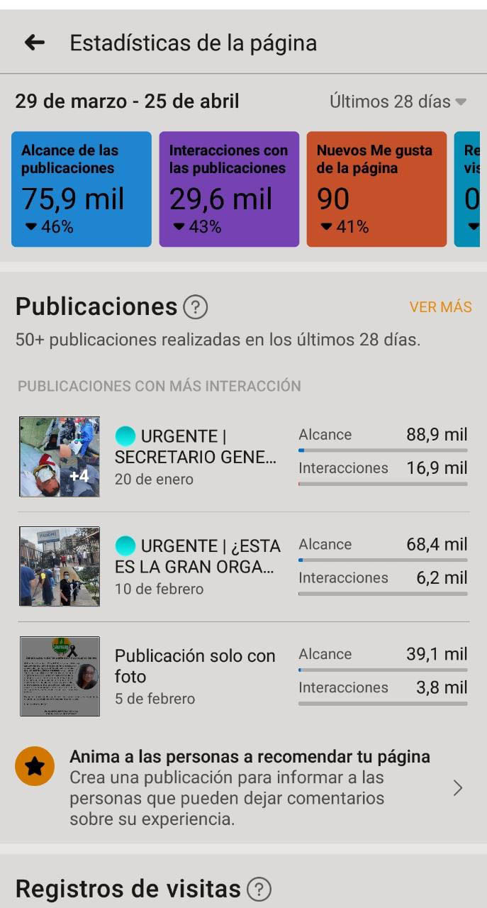 Facebook alcanza más de 350 mil visitas semanales, con 75,900 entre marzo y abril de este año con 29,600 interacciones