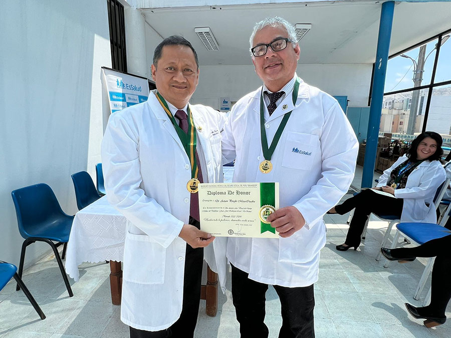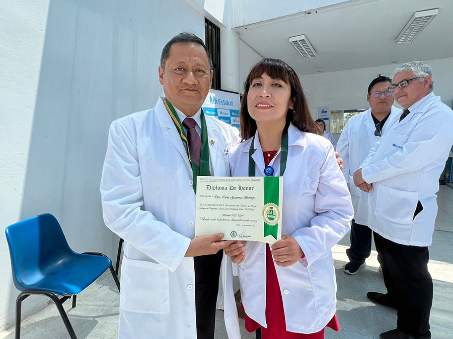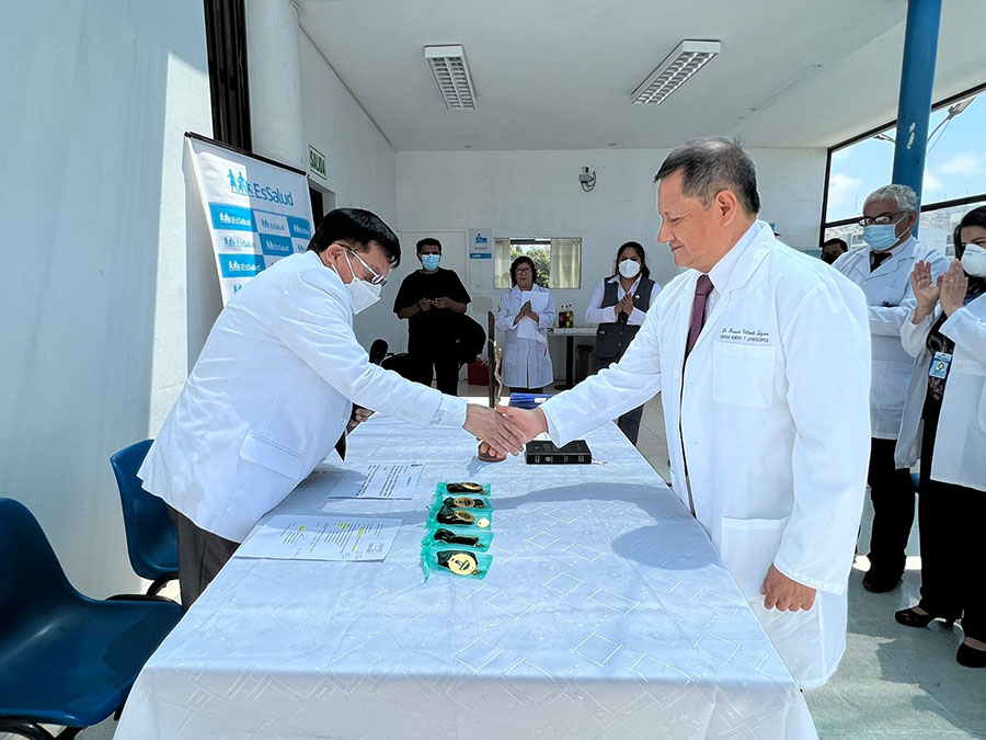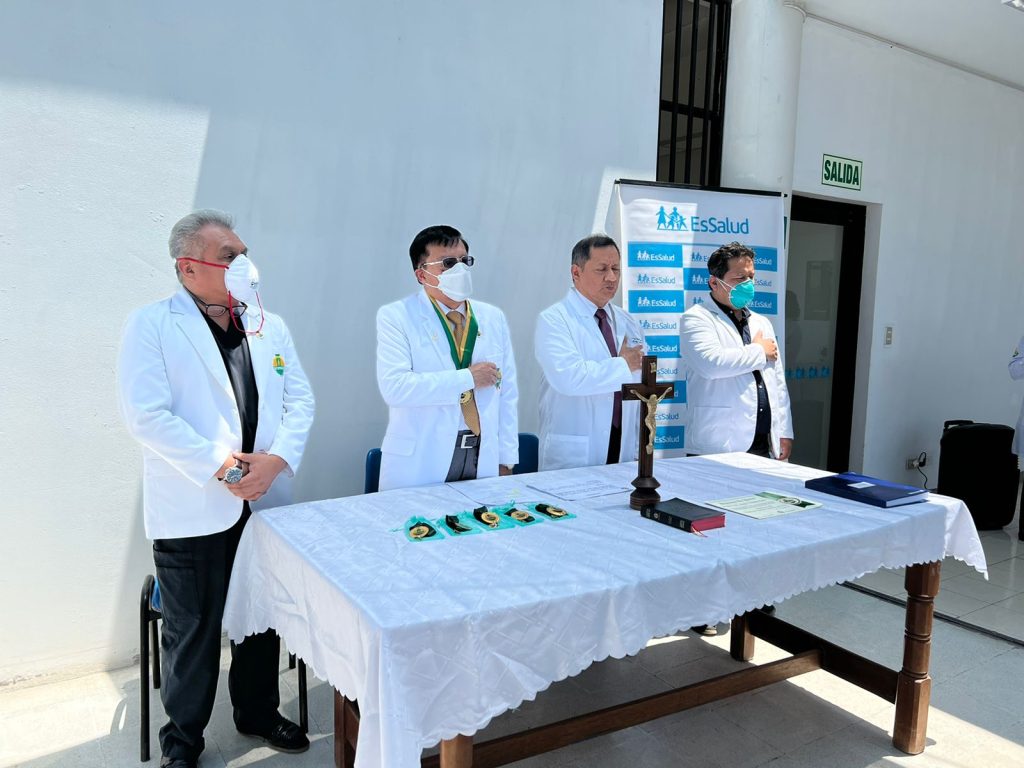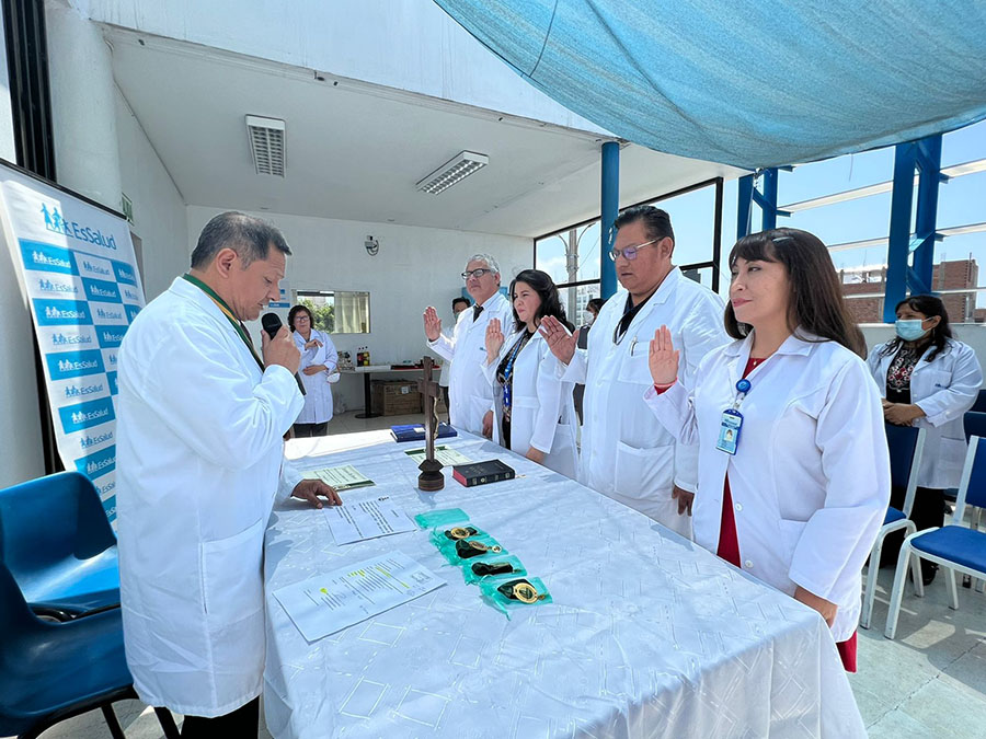 Así se expresó el secretario de Organización, Jorge Calvay, quien asistió en representación del secretario general del SINAMSSOP, a la ceremonia de juramentación de la nueva junta directiva del Cuerpo Médico del Policlínico Juan José Rodríguez Lazo de Chorrillos 2022 – 2024, que preside el médico Moisés Valladolid Lazares.