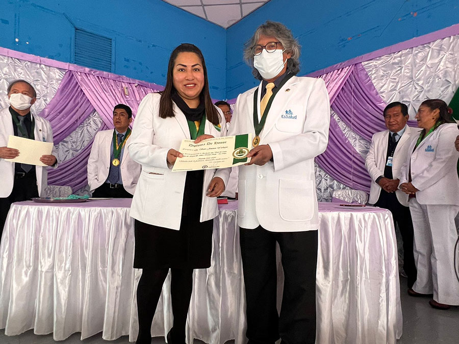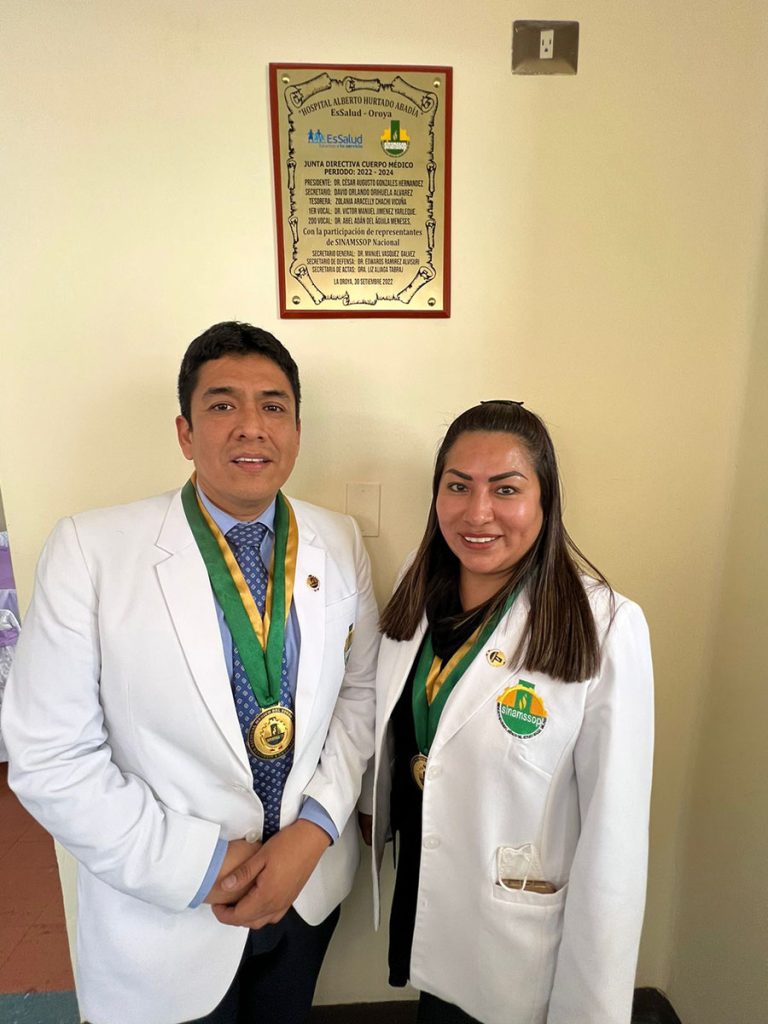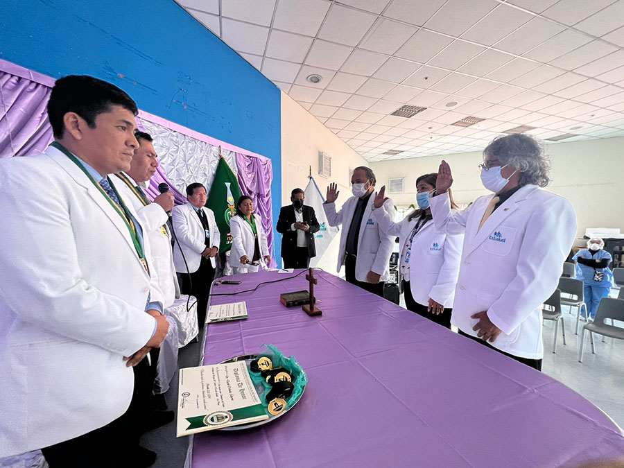 En el marco de un ambiente festivo y de confraternidad se realizó hoy la ceremonia de juramentación de la junta directiva del Cuerpo Médico del Hospital II de la Oroya, para el periodo 2022-2024 que preside el destacado médico, César Augusto Gonzales Hernández, en la que participaron en representación del secretario general, Manuel Vásquez, los secretarios de Defensa Edward Ramírez y de Actas, Liz Aliaga.