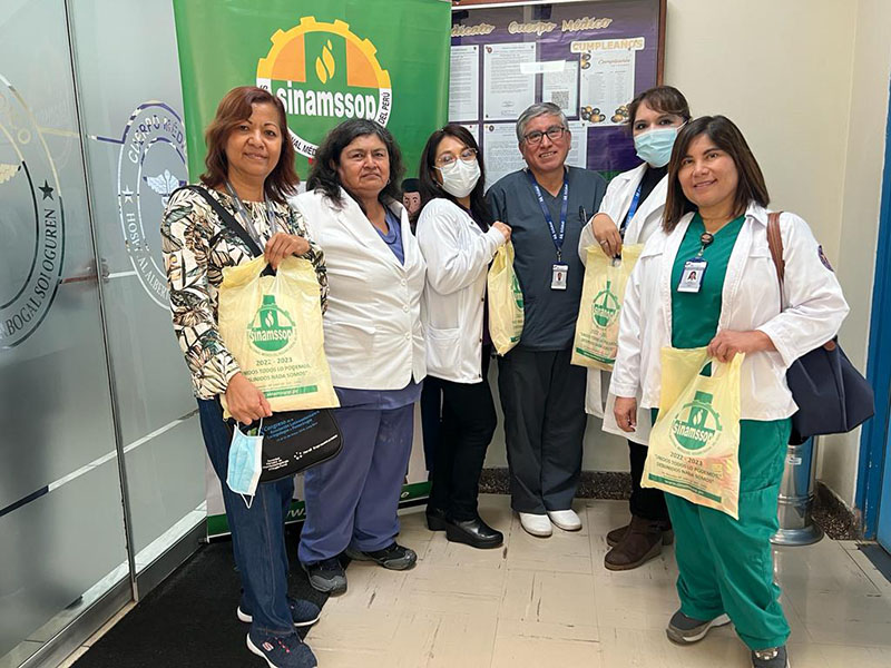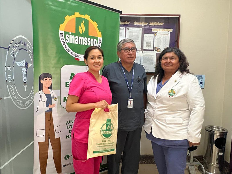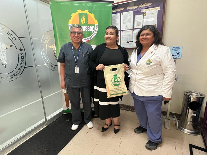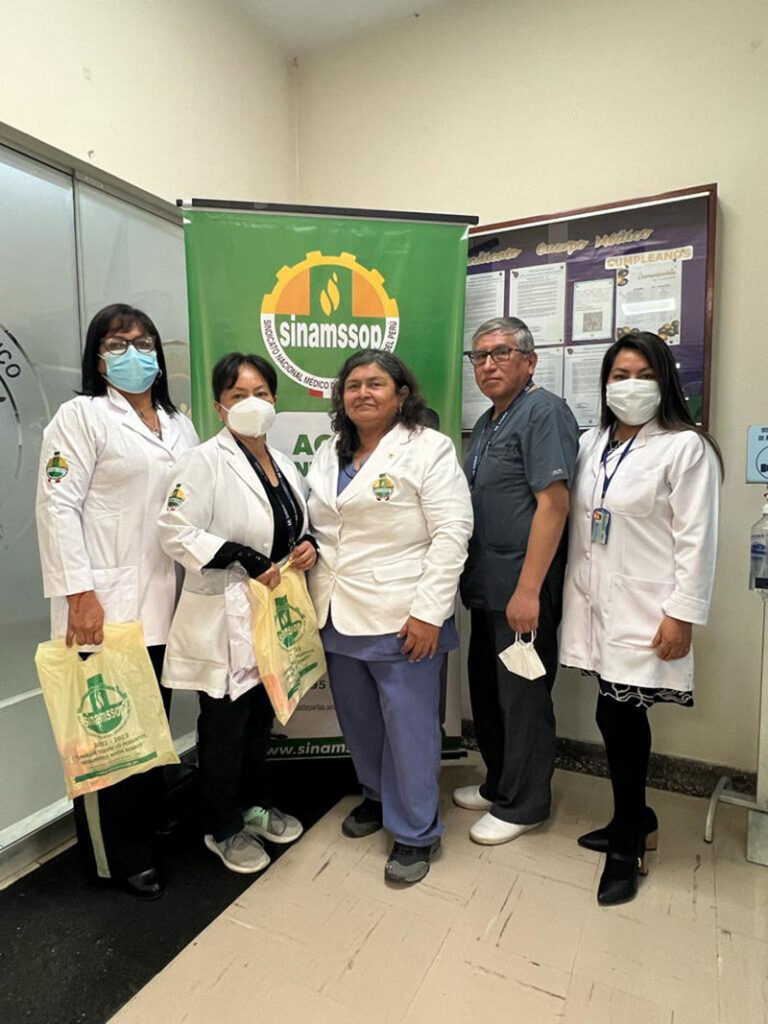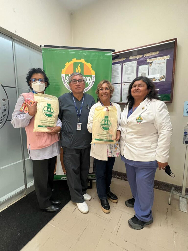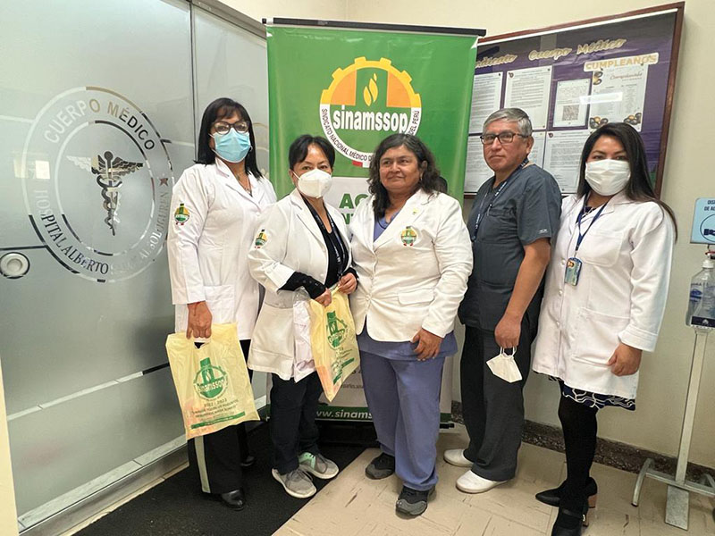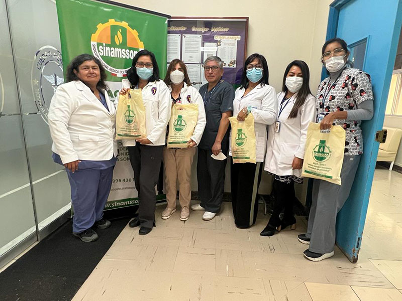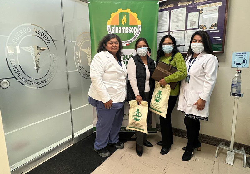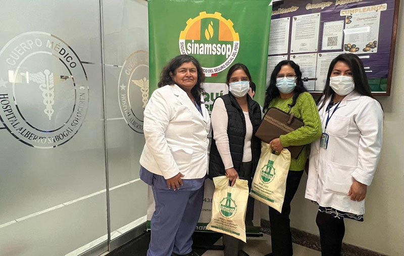 En representación del secretario general del Sinamssop, la primera subsecretaria, Rosa Quillay, y la secretaria de Actas y Archivo, Liz Aliaga; realizaron hoy la última entrega de mandiles para las agremiadas de la base sindical del Hospital Nacional “Alberto Sabogal Sologuren”. Fueron más de 50 agremiadas quienes recibieron y agradecieron este presente al Sindicato.