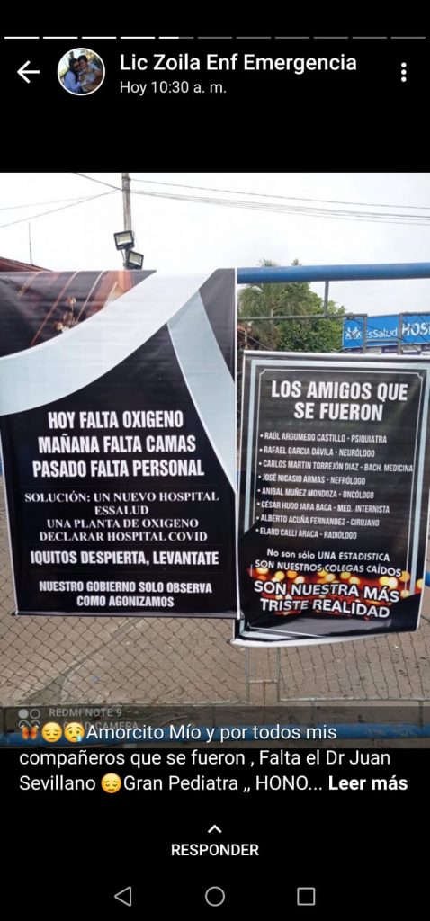 La crisis sanitaria es insostenible dijo y los gerentes y funcionarios venidos de Lima y de otras partes del país, nada han hecho por resolverla. Los profesionales médicos, de la salud y trabajadores exigimos funcionarios oriundos comprometidos con la región y conocedores de su realidad, es inaceptable que no puedan construir plantas de oxígeno, mientras sacerdotes con pocos recursos, pero con buena voluntad han donado dos plantas que ya son insuficientes.