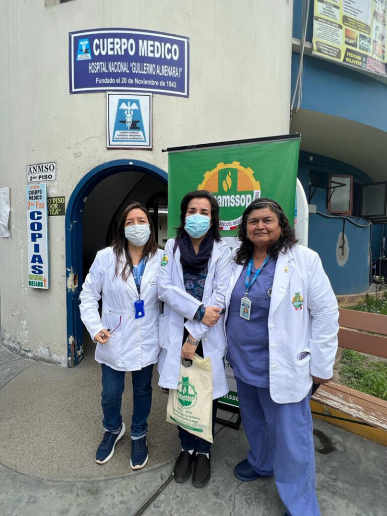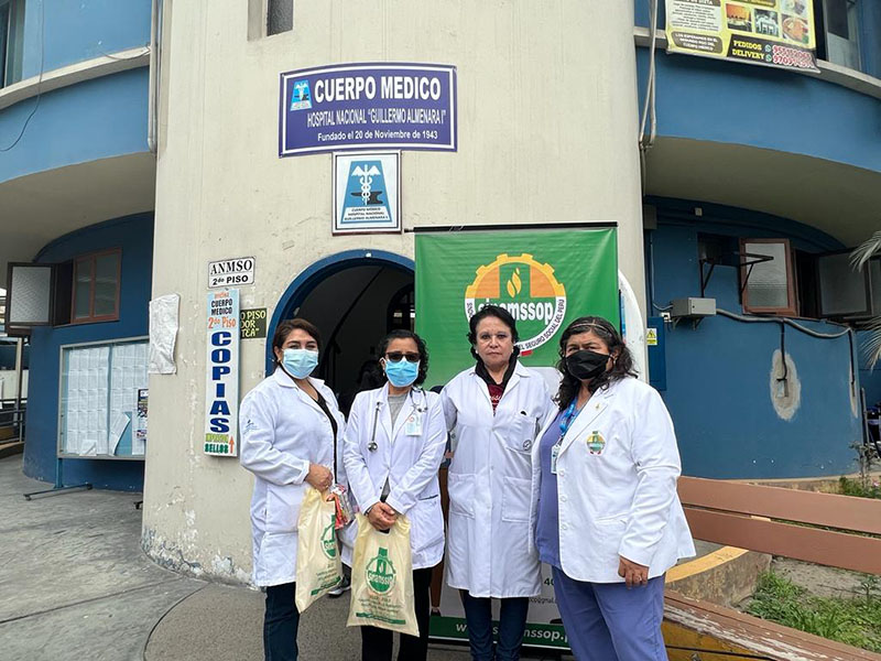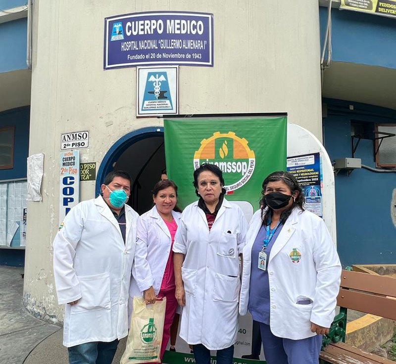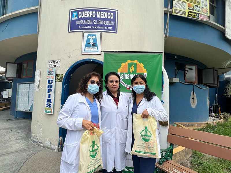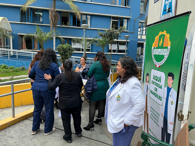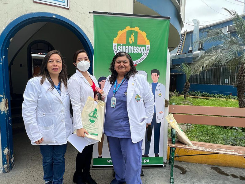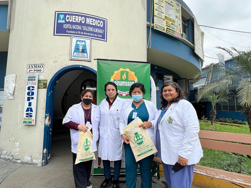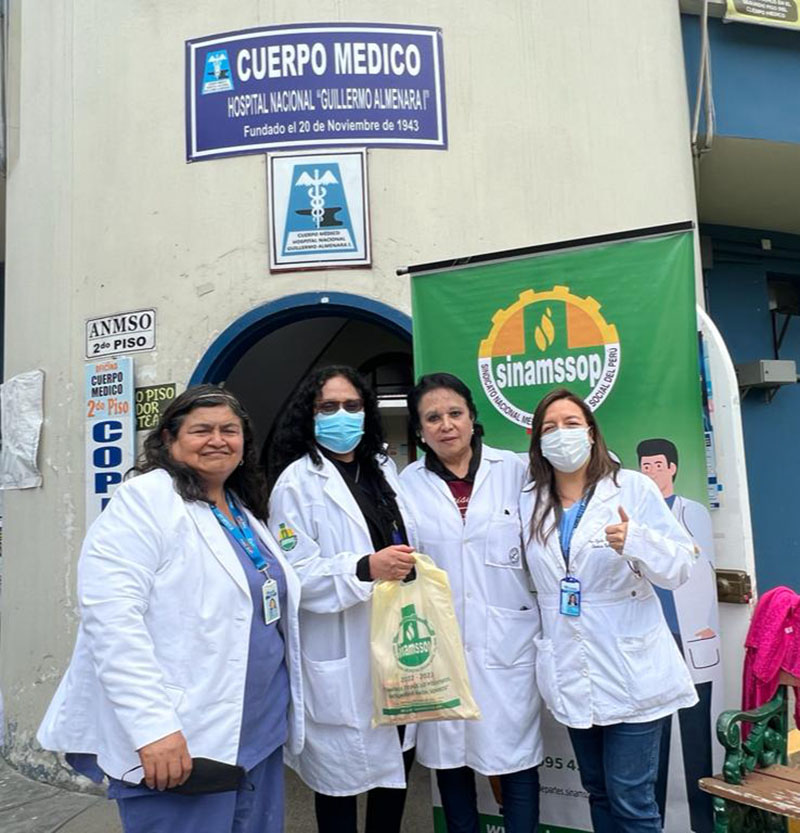 La primera subsecretaria, Rosa Quillay y la segunda subsecretaria del Sindicato, Gladys Pasco, hoy desde las 11:00 am en la entrada del cuerpo médico, llevaron a cabo la entrega de mandiles para las agremiadas del Hospital Nacional “Guillermo Almenara Irigoyen”.