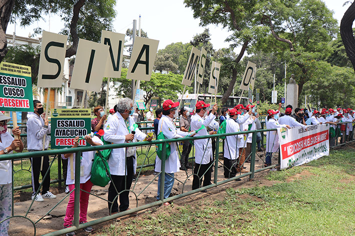 La decisión fue anunciada por Teodoro Quiñones durante la Asamblea Nacional de Delegados presencial que se inició esta mañana en el local institucional. De allí, los más de 150 delegados se dirigieron al Ministerio de Trabajo, y acompañados por el presidente de la Comisión de Salud del Congreso, Omar Merino, pidieron ser recibidos por el ministro, Javier Palacios, quien se negó a dialogar con ellos y envió a una funcionaria de tercer nivel. El congresista Merino lamentó que esa sea la forma en que el gobierno trata a los médicos que ofrendan su vida en la pandemia del Covid-19.