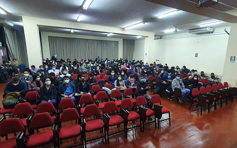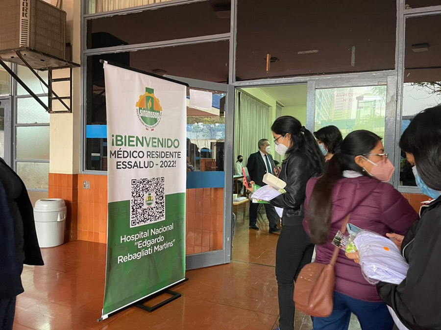 Así se expresó hoy, la primera subsecretaria general del SINAMSSOP, Rosa Quillay, en representación del secretario general, durante el programa de inducción de los participantes del Residentado Médico 2022 de EsSalud en el Hospital Nacional Edgardo Rebagliati Martins, en el cual trabaja como médica emergencista, habiendo sido presidenta del Cuerpo Médico de dicho hospital, por lo que tuvo a su cargo las palabras de bienvenida del evento.