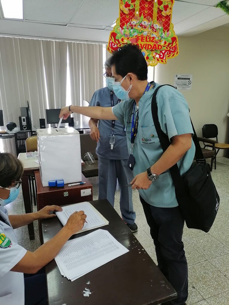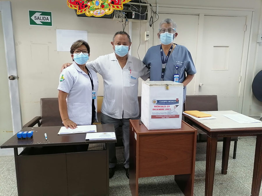 El dirigente nacional, Alfonso Díaz, a nombre del secretario general del SINAMSSOP, Teodoro Quiñones, expresó la felicitación del gremio a la elección del nuevo consejo directivo del Cuerpo Médico del Hospital Nacional Almanzor Aguinaga, que preside el reconocido doctor, Luis Salinas Andrade, para el periodo 2022 – 2023.