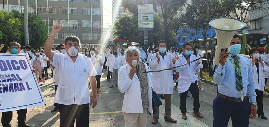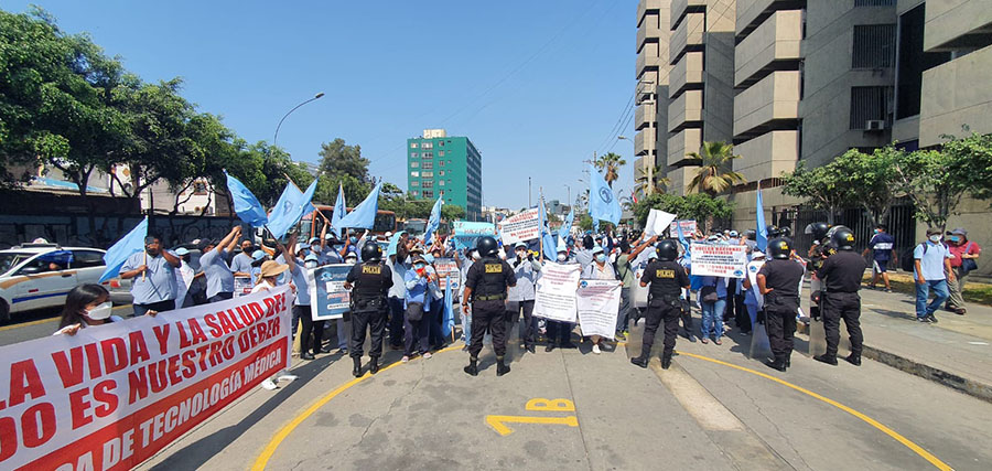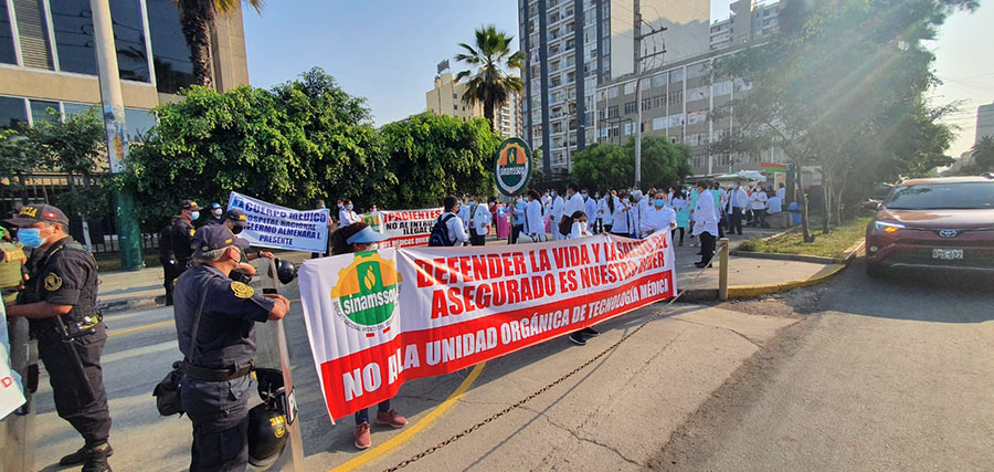 El plantón denominado ¡Pacientes en Peligro! realizado en la puerta de la sede central de EsSalud en Jesús  María, en medio de los gritos e insultos de los tecnólogos rechazó la presión política del gobierno y de congresistas de Perú Libre, para imponer la creación de la Unidad Orgánica.
