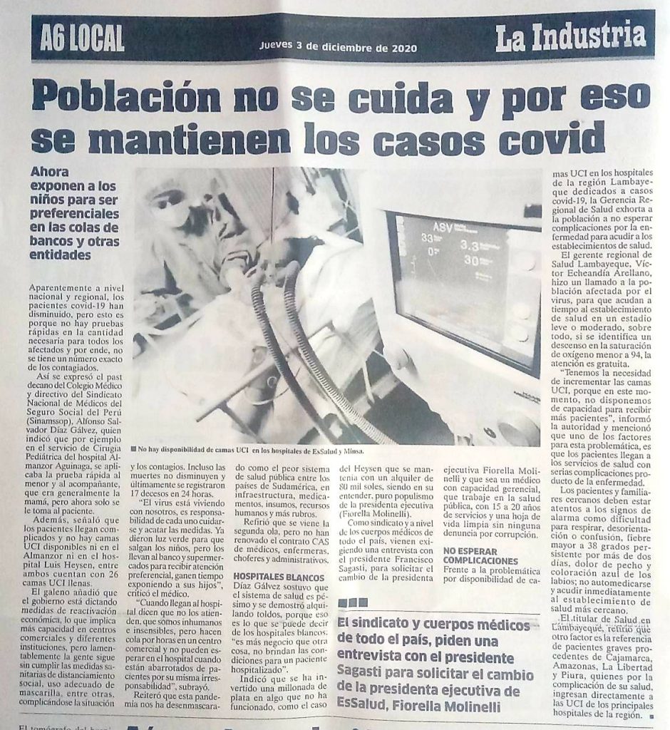 El Sindicato Nacional Médico del Seguro Social del Perú (SINAMSSOP)…